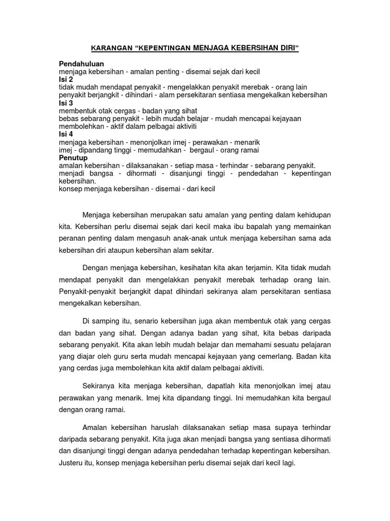 Keluarga boleh memainkan peranan dalam memupuk amalan kebersihan diri dan tempat tinggal kebersihan diri karangan. Karangan bahasa melayu merangkumi pelbagai tema dan tajuk yang berpotensi .